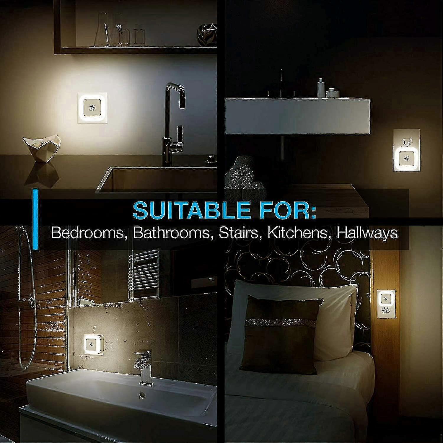 LA LUMINOSITÀ PERFETTA - Le nostre luci notturne intelligenti forniscono la giusta quantità di luce per camminare in casa senza accendere le luci principali. Non troppo luminoso, non troppo fioco. il tocco giusto.ILLUMINAZIONE INTELLIGENTE - Si accende automaticamente quando la luce ambientale diventa insufficiente. Si regola in modo intelligente per tutta la notte. Dì addio alle dita dei piedi mozzate e dai il benvenuto a una casa più intelligente.EFFICIENTE DAL PUNTO DI VISTA ENERGETICO - Estremamente efficiente dal punto di vista energetico, con un costo inferiore a 60 centesimi all'anno. Viene fornito in una confezione ecologica. Non dovrai più cambiare le lampadine. Salva sia l'ambiente che il tuo portafoglio.ESTREMAMENTE COMPATTO - Splendidamente progettato con un look moderno e minimalista. Si adatta facilmente a piccoli spazi e non ostruisce altre prese. Ha una durata del LED di 10.000 ore. Altre luci utilizzano plastica economica, noi usiamo ABS al 100% che è resistente al fuoco.